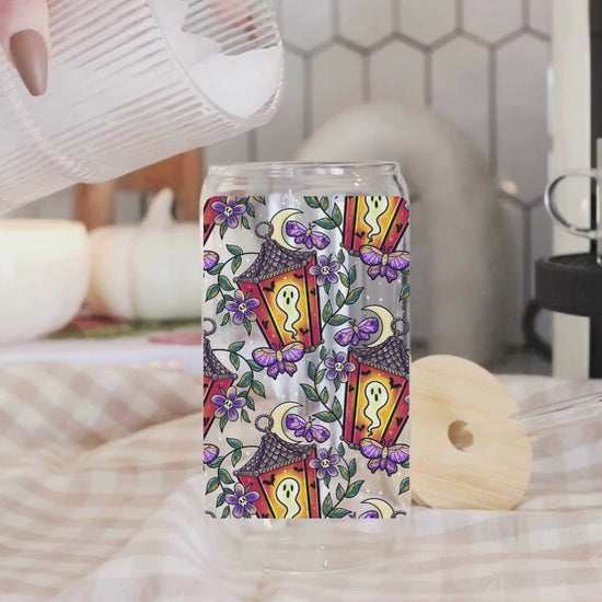 Ghost Lanterns Cup Wrap for 16 oz Libbey Glass | UV DTF Decal | Cozy Cottagecore & Pastel Goth
