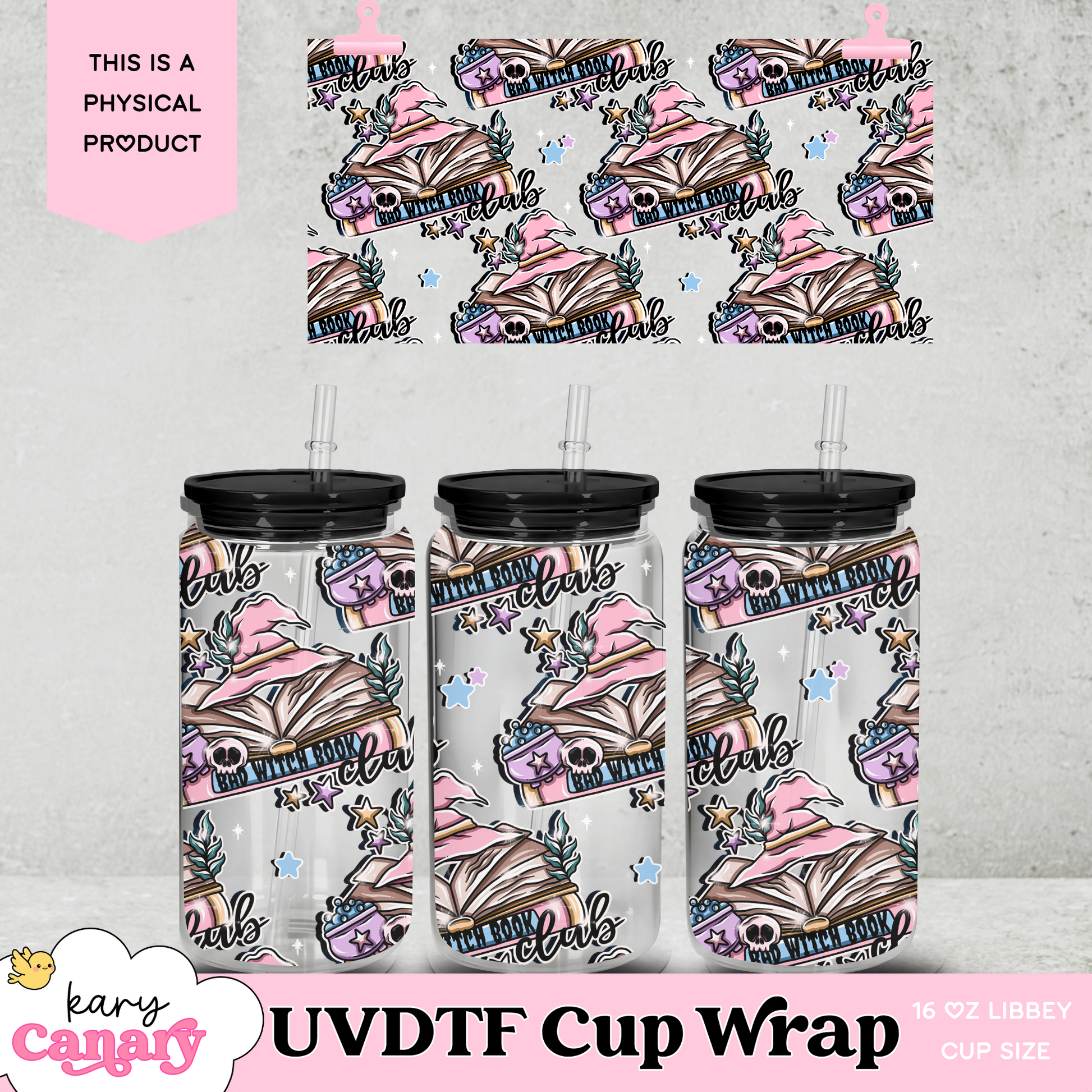 Bad Witch UV DTF Cup Wrap | 16 oz Libbey Glass Can | Witchy Pastel Book Design | Ready-to-Press Wrap