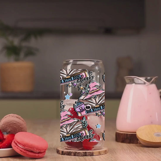 🧙🏻♀️Bad Witch UV DTF Cup Wrap | 16 oz Libbey Glass Can | Witchy Pastel Book Design | Ready-to-Press Wrap